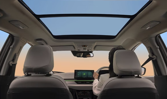 नई leatherette upholstery, dual-tone dashboard (Mocha Brown या Lunar Grey), और नया 9-inch touchscreen infotainment system काफी upmarket feel देता है.