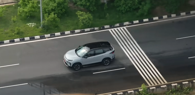 - फ्रंट प्रोफाइल – पारंपरिक ग्रिल की जगह EV स्टाइल का क्लोज्ड ग्रिल, LED DRLs और शार्प हेडलैम्प्स।