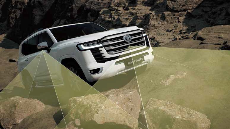 - Land Cruiser में Multi-Terrain Select system भी दिया गया है जो different terrains जैसे sand, mud, rock या snow के लिए driving settings को optimize करता है। Driver terrain के हिसाब से mode select कर सकता है और system automatically engine power, braking और traction control को adjust कर देता है।
